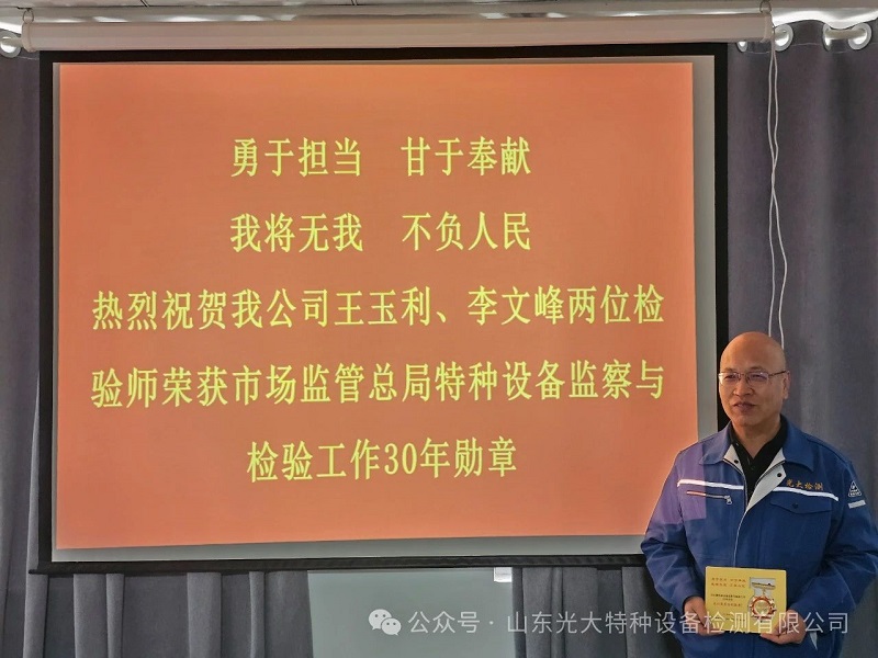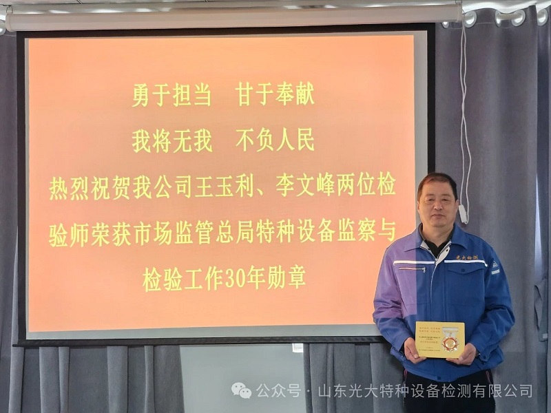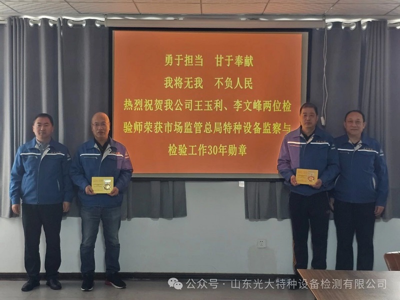 我公司兩名檢驗(yàn)師榮獲特種設(shè)備監(jiān)察與檢驗(yàn)工作30年勛章