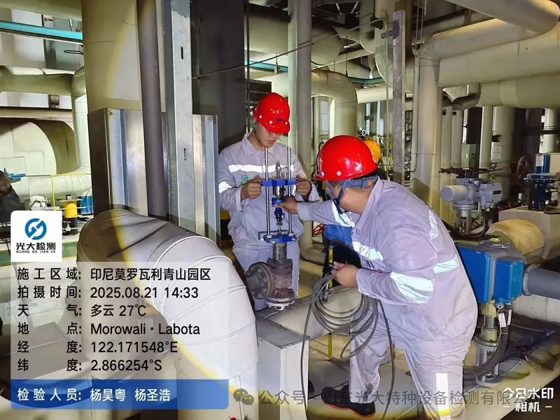 為服務國家 “一帶一路”戰略,積極主動開拓海外特種設備檢驗檢測市場,光大檢測于2025年7月與印尼青城金屬有限公司簽訂了《安全閥效驗合同》。