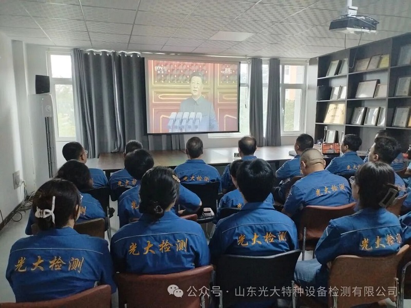 為隆重紀念中國人民抗日戰爭暨世界反法西斯戰爭勝利80周年,進一步動員和激勵全公司人員銘記歷史、緬懷先烈、珍愛和平、開創未來,光大檢測統一組織未出差檢驗人員集中觀看9.3閱兵式直播及相關紀念活動。